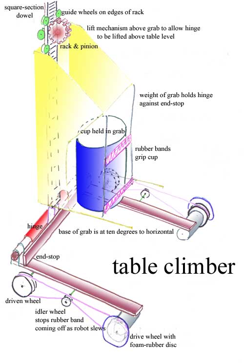 this drawing shows it driving along with the grab lowered; below is an animation of climbing on/off table