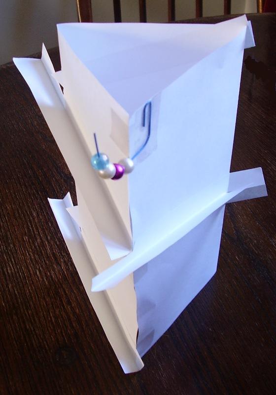 I have recently discovered it pays to make plastic bead runs rather than marble runs. Because beads are so much lighter you can try out your ideas very quickly using folded strips of paper glued to (or suspended from) paper structures. The simplest one is a sheet of paper taped to a fridge door with folded strips of paper glued to it obliquely so the bead runs back & forth.