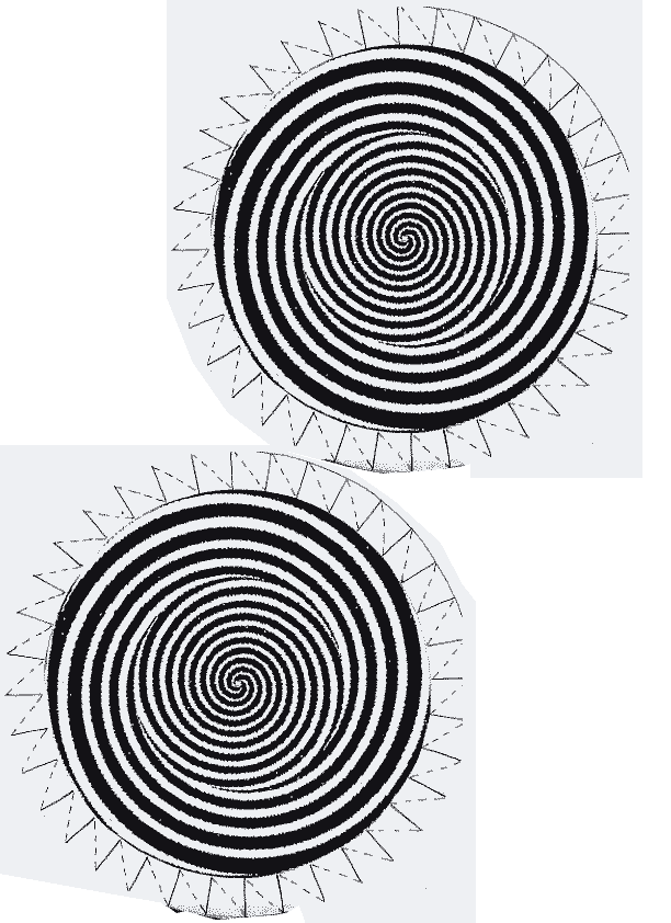 cut out a disc, fold up the fan blades, make bearing at center of back with thumb tack, plastic bead and drinking straw. Rotate at slow even speed by blowing, stare at center for about 30 seconds then look at something else.
